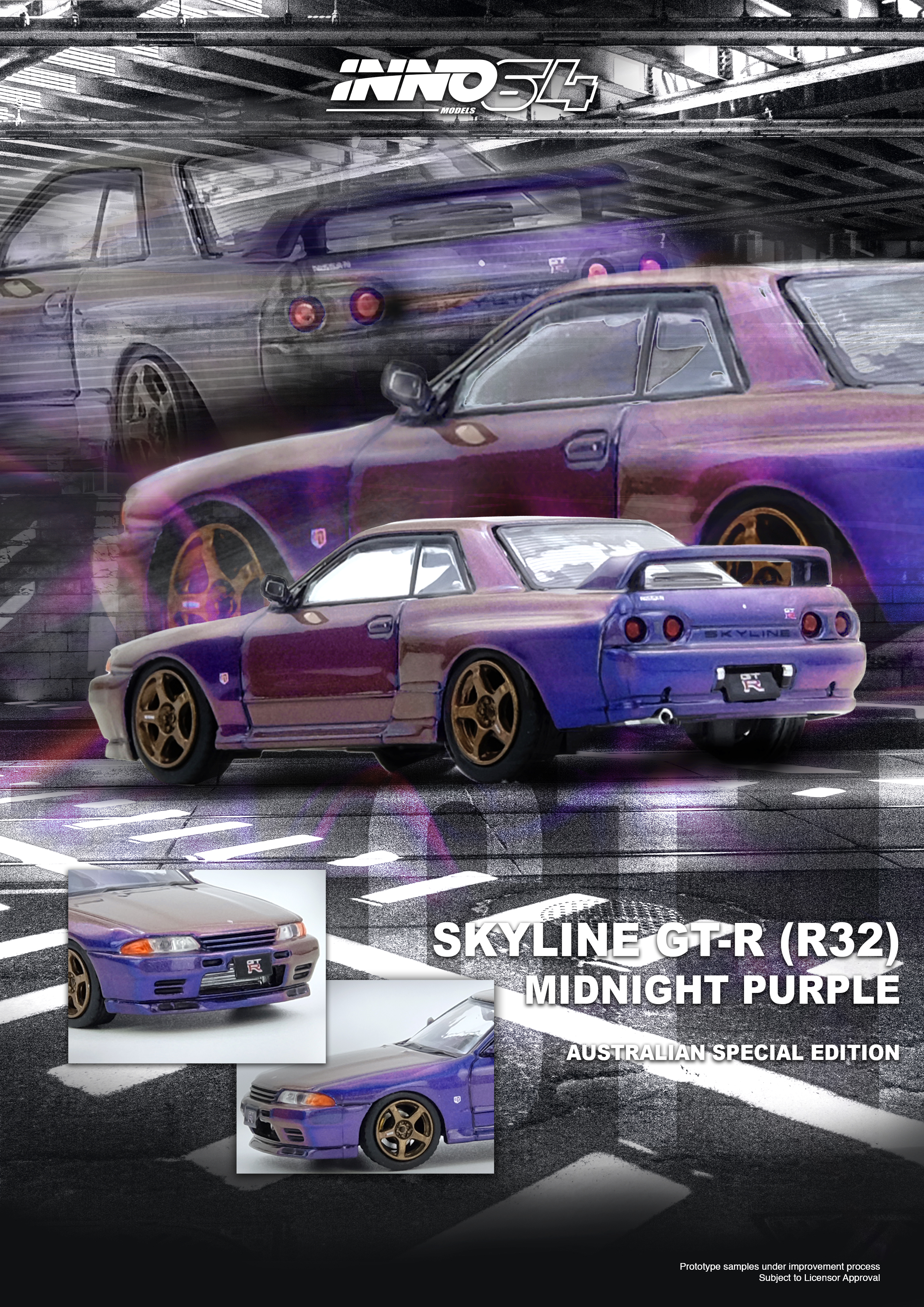 Model: INNO 1/64 Die-cast SKYLINE GT-R (R32) Midnight Purple Australia Special Edition Limited Edition