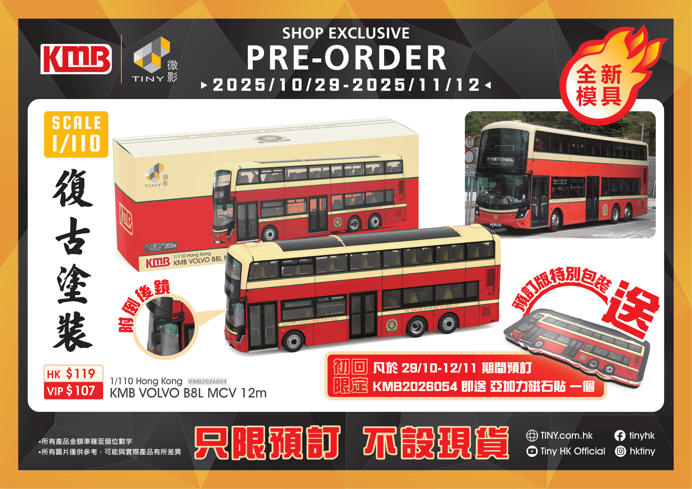 Want to get more NEW Pre-order & NEW items information? Follow our official「TINY」FaceBook & Instagram NOW!